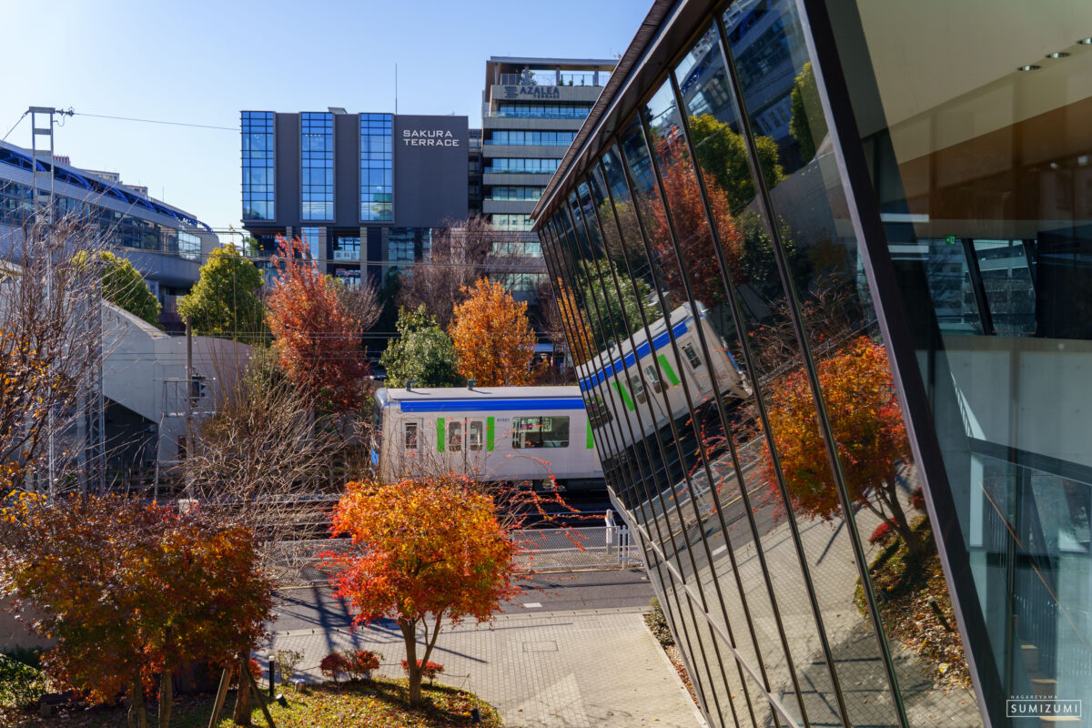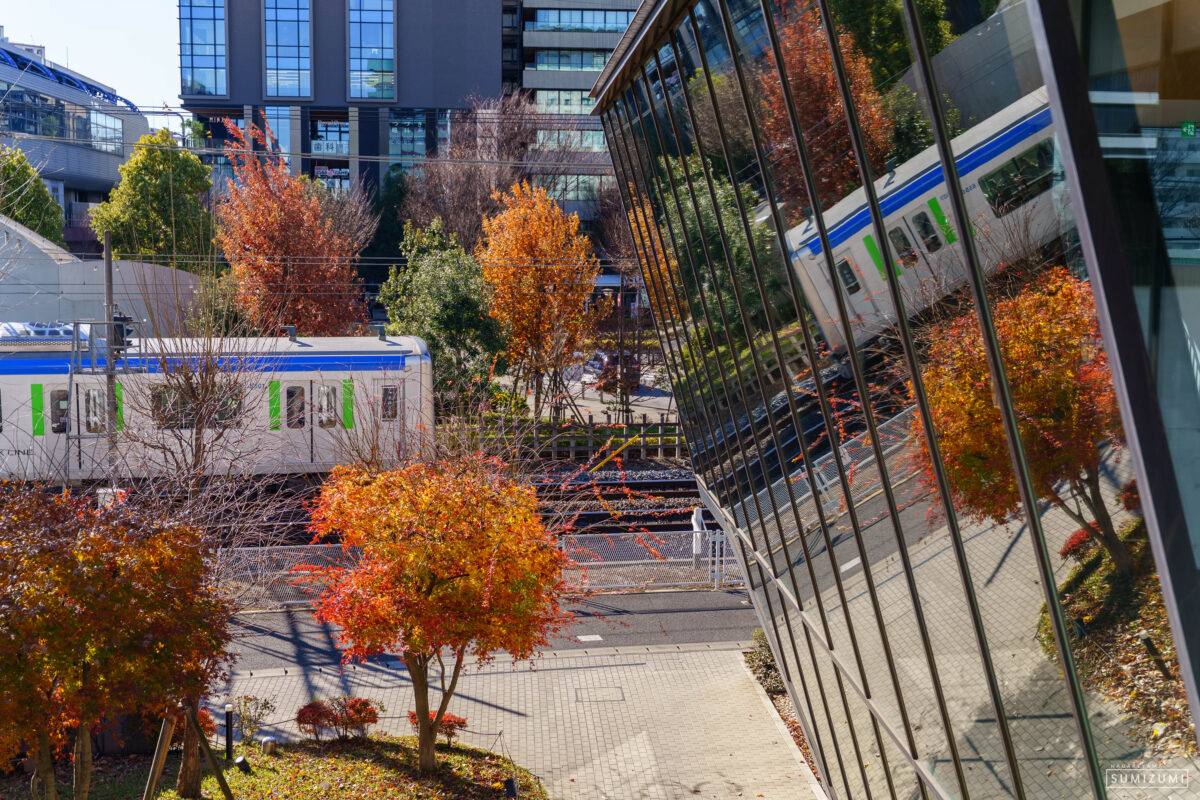 踏切のカンカン、車両のガタガタ、モーターの轟音が混ざりあいながら、けたたましくリフレクションの中に溶けていくアーバンパークラインの車両の様子をしばし見ていました。