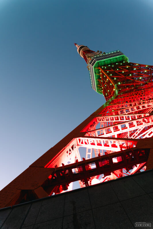 トラス形状の赤い三角形が織りなす背高のっぽの東京タワーがイルミネーションに飾られている様子が、東京の街を彩る大きなクリスマスツリーにように見えたもので、それを間近に見たくなったのです。